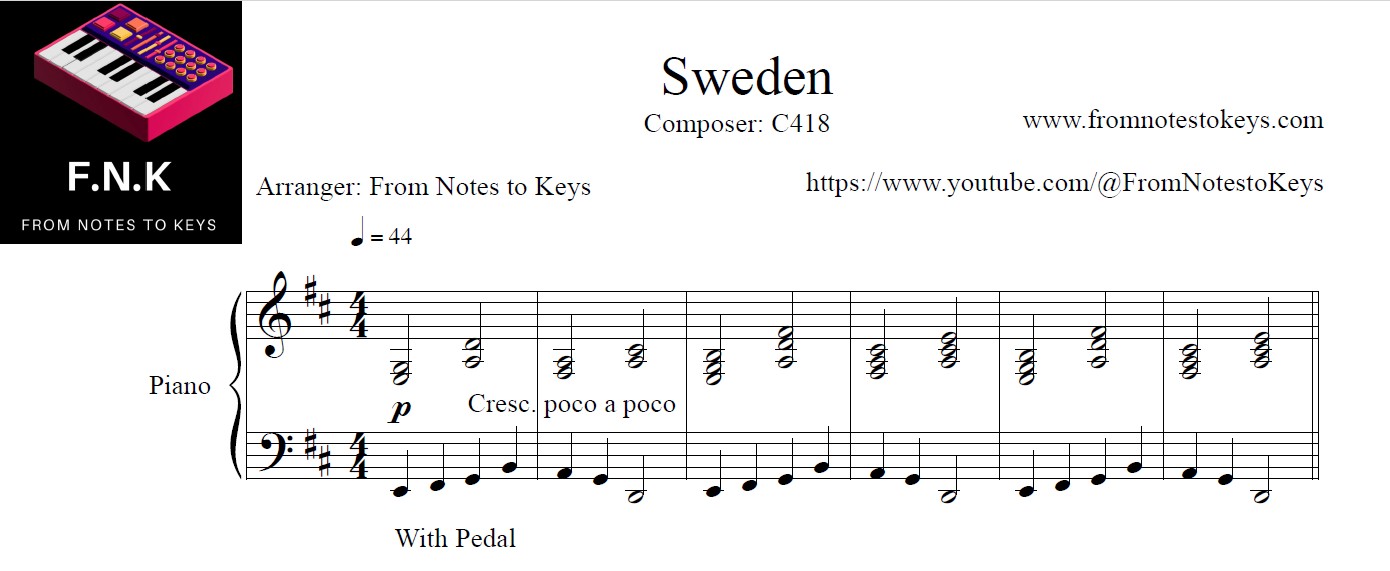 Download the free piano sheet music for Sweden from Minecraft! 🎹⛏️ This beautiful and nostalgic piece, composed by C418, is perfect for pianists of all levels. Whether you’re a beginner or an experienced player, bring the magic of Minecraft to your piano today. Get your free sheet music now and start playing